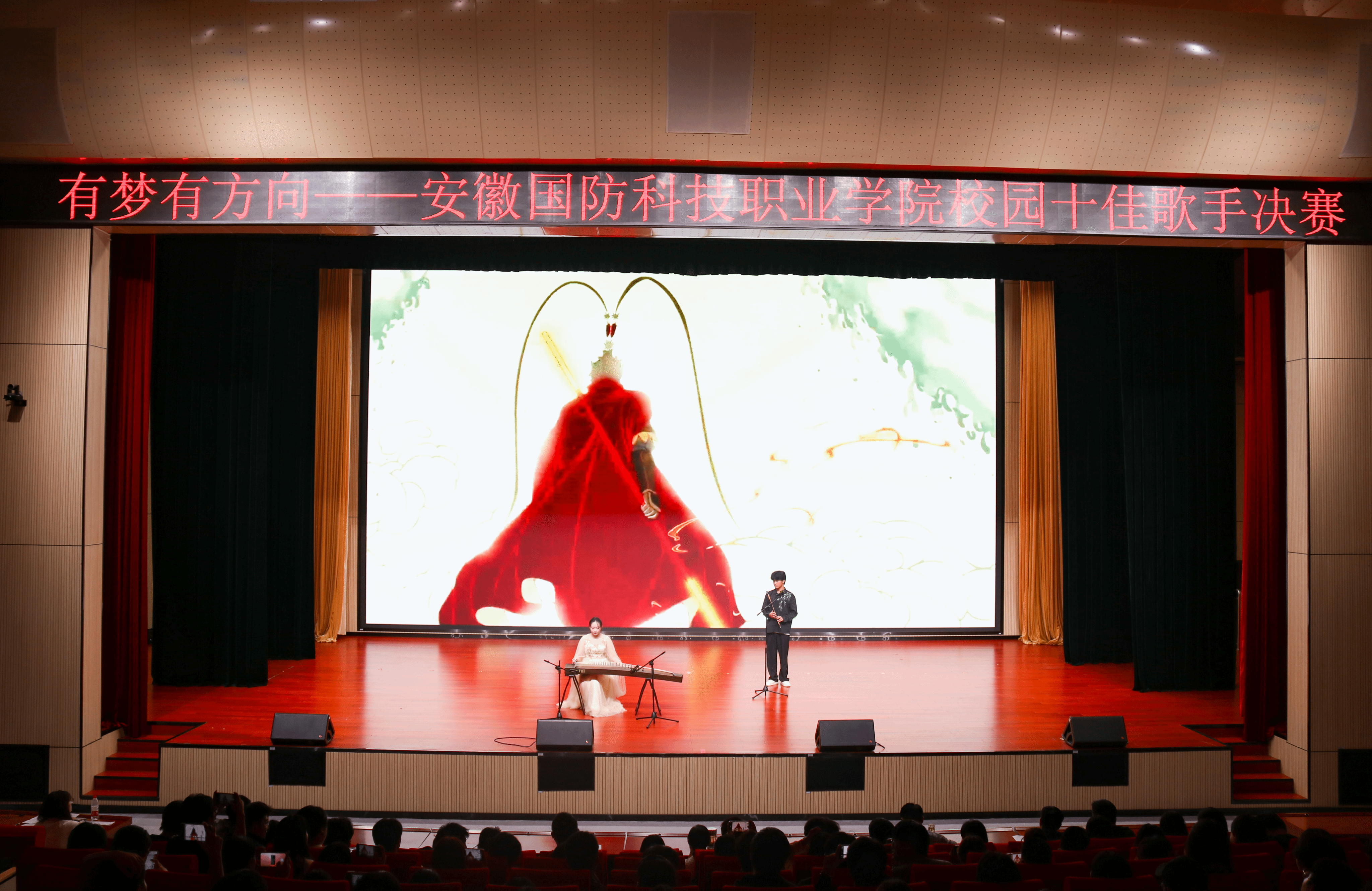 除了选手们的精彩演唱之外,现场设置游戏互动环节,同学们热情高涨,现场欢笑不断。校学生会的乐器演奏《天宫迅音》和经贸管理学院古典舞《红马》更是将现场氛围推向一个又一个高潮。